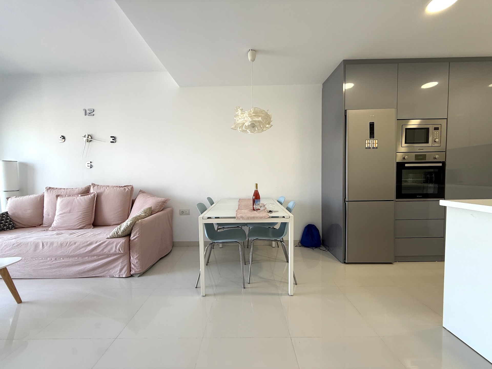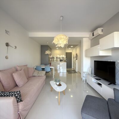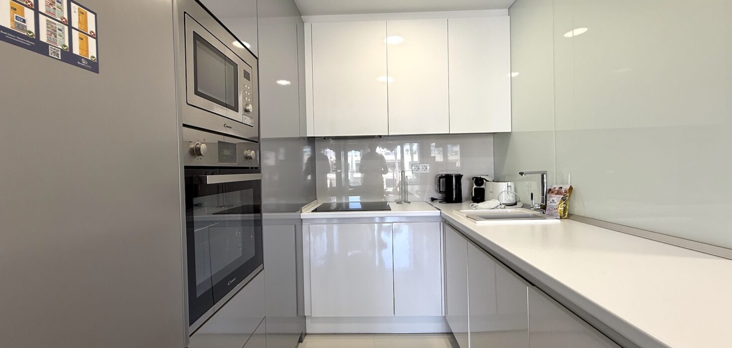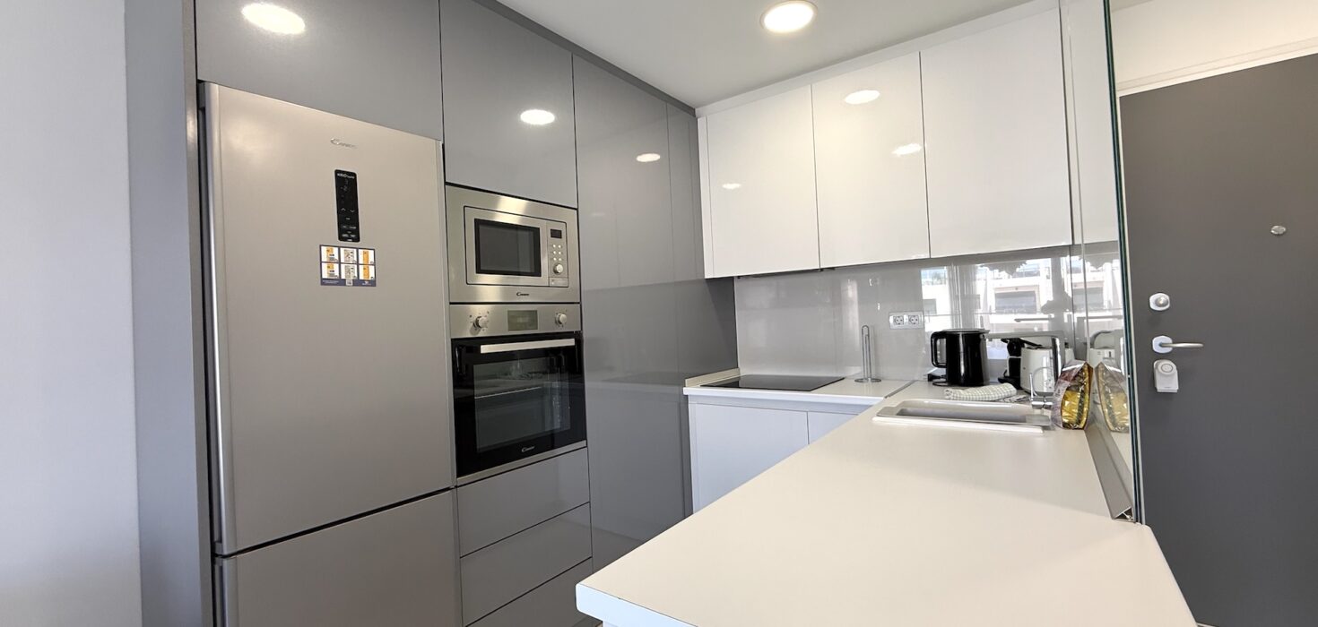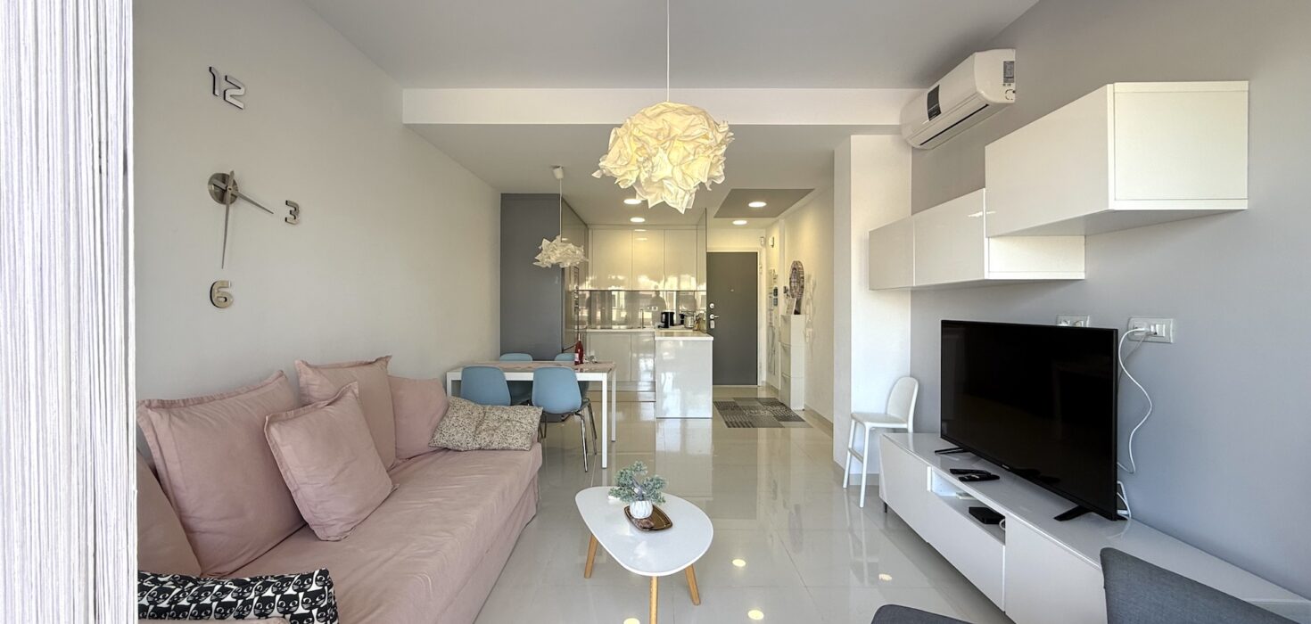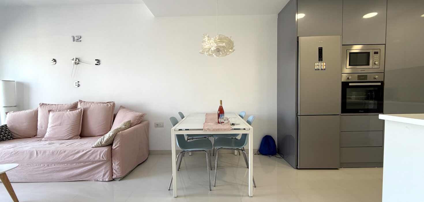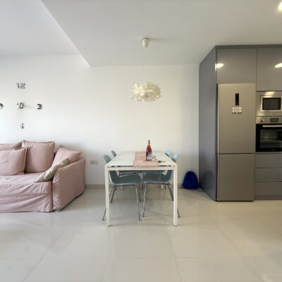 Apartament jest jasny, funkcjonalny i gotowy do zamieszkania. Strefa dzienna łączy salon z kuchnią w nowoczesnym układzie open space, a taras stanowi idealne miejsce na poranną kawę lub wieczorny relaks przy śródziemnomorskim klimacie.
