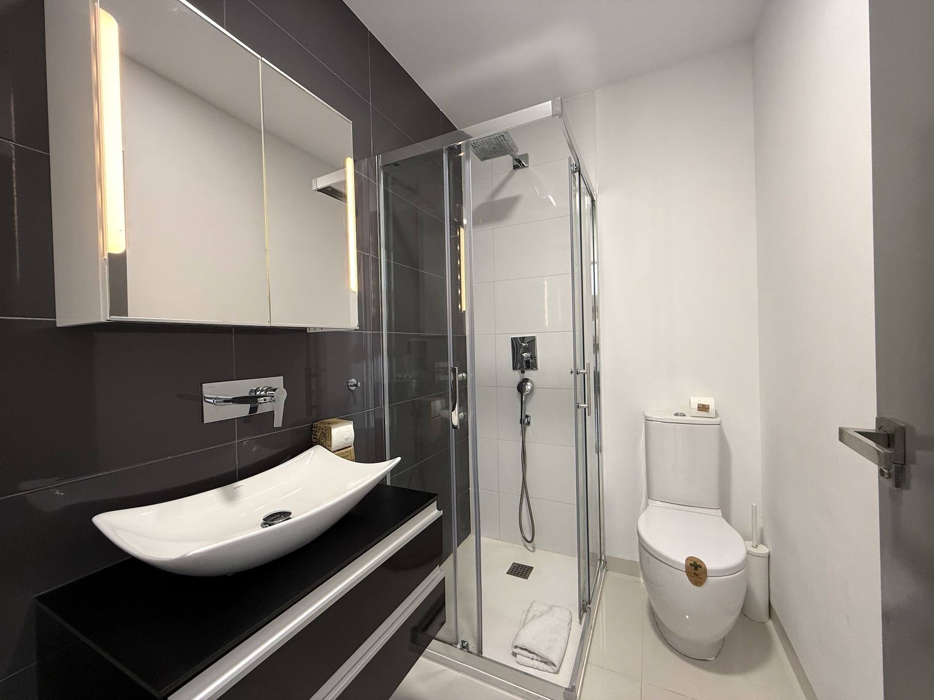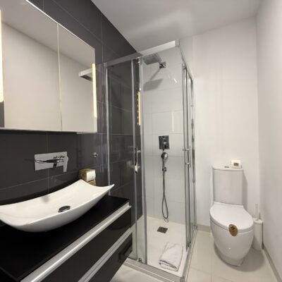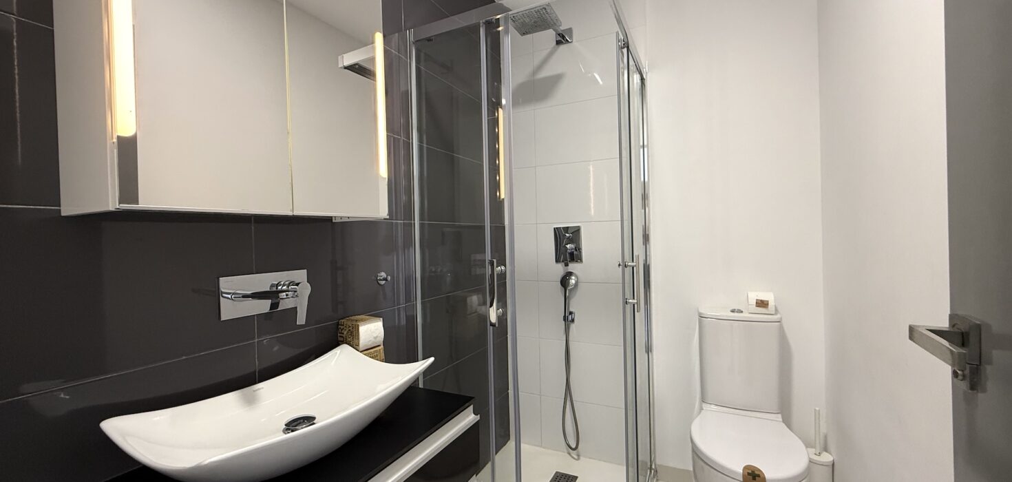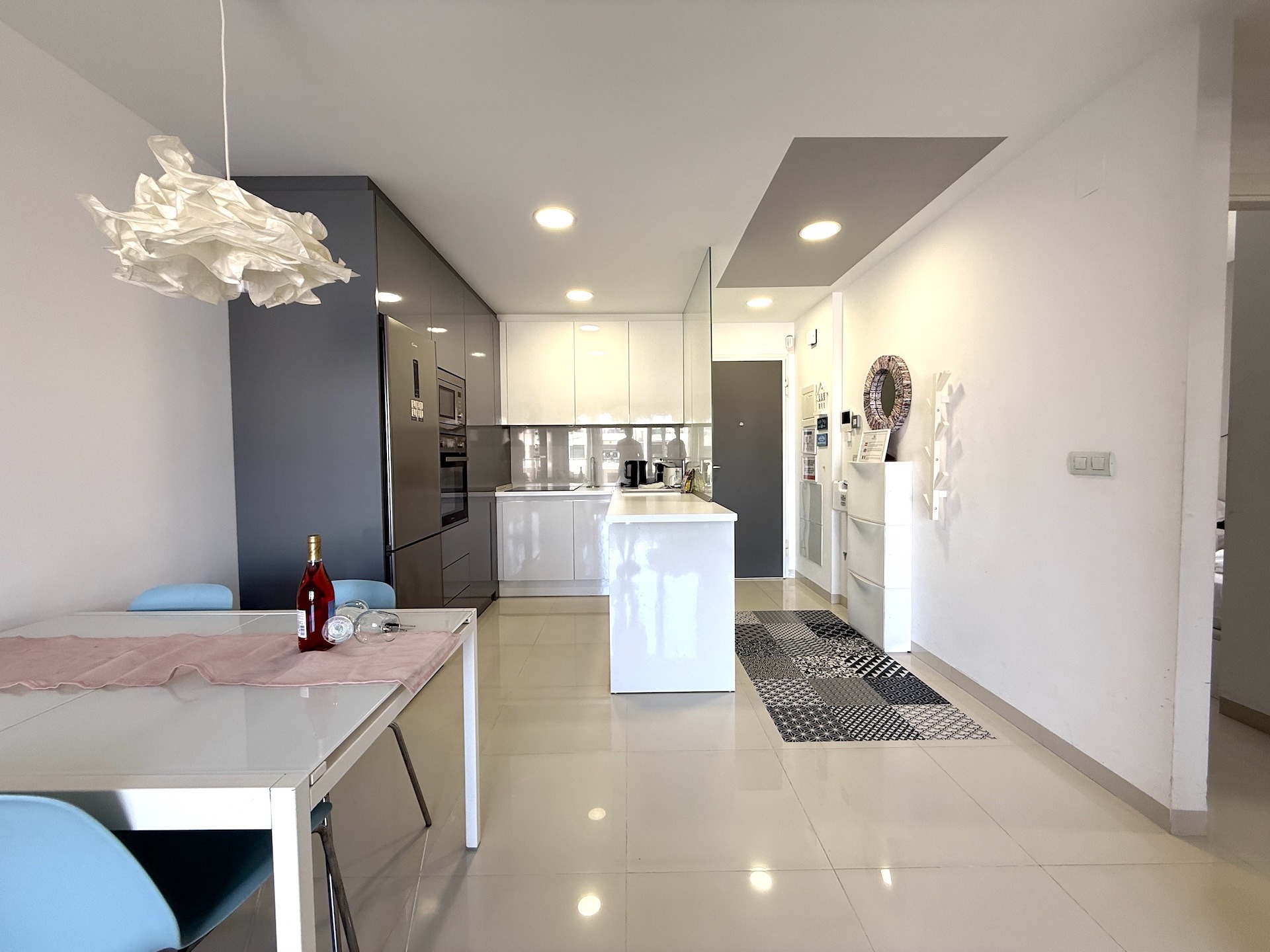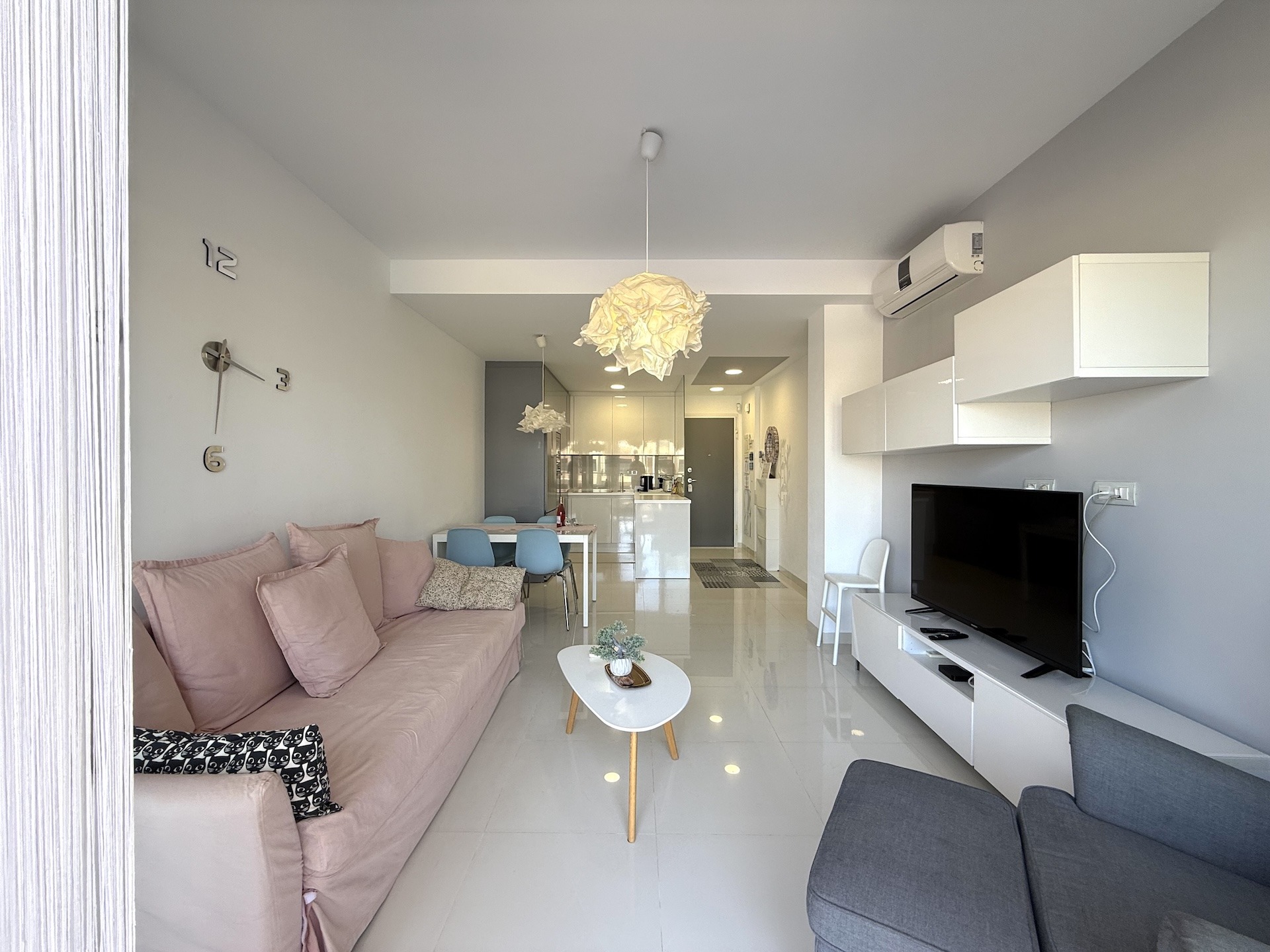Apartament jest jasny, funkcjonalny i gotowy do zamieszkania. Strefa dzienna łączy salon z kuchnią w nowoczesnym układzie open space, a taras stanowi idealne miejsce na poranną kawę lub wieczorny relaks przy śródziemnomorskim klimacie.